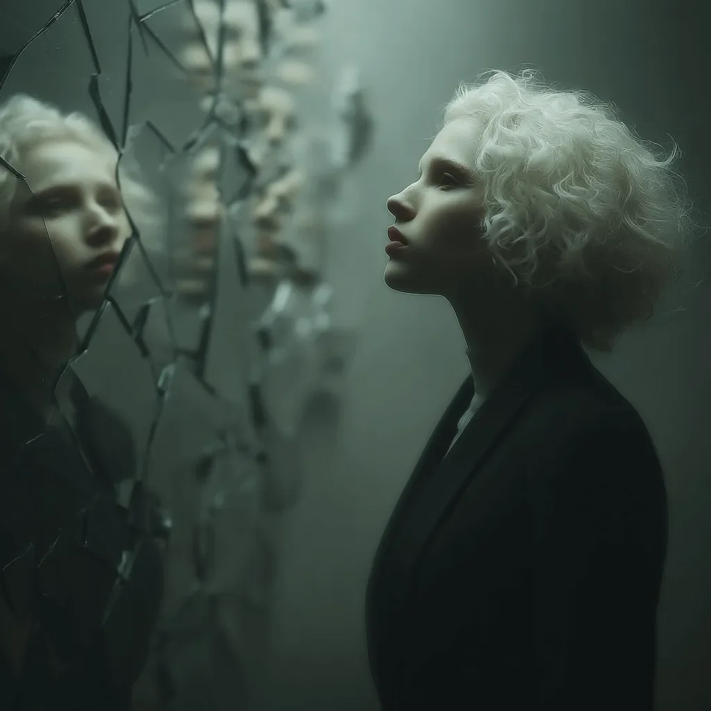 L’identità non è mai intera: si sgretola, si ricompone, si frantuma come vetro sotto luce artificiale. Ogni pezzo riflette un’immagine diversa, a volte ironica, a volte crudele. In questa frammentazione si annida il vero io: quello che non sa scegliere tra sarcasmo e silenzio, tra intimità e distacco.